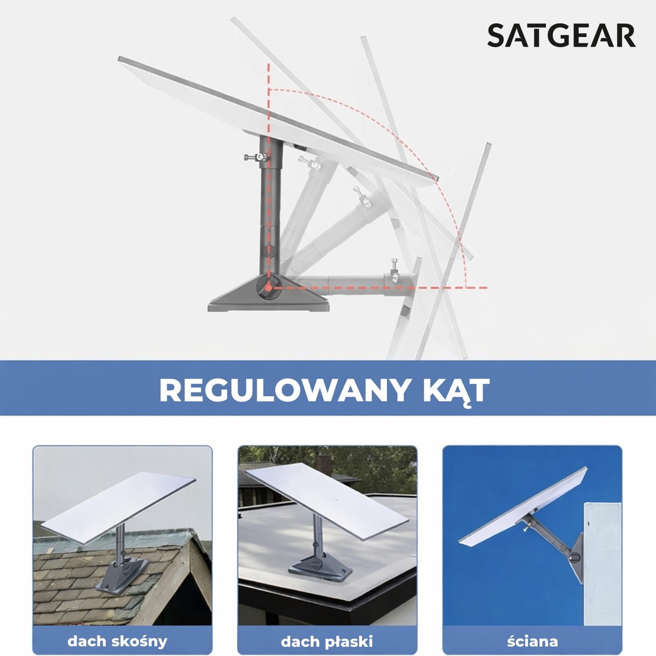 Szybka instalacja bez specjalistycznych narzędzi – kompatybilny z różnymi powierzchniami (dach, ściana, płaska powierzchnia). - Stabilne mocowanie